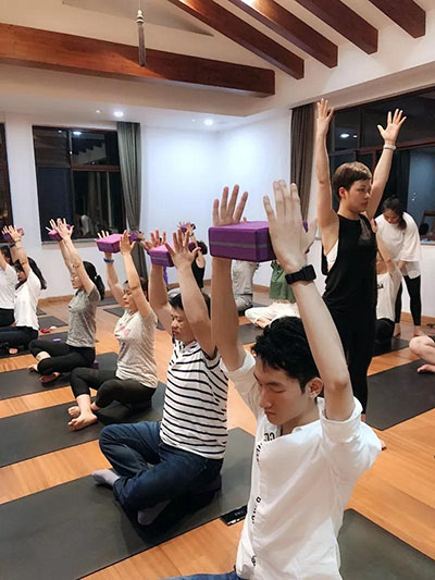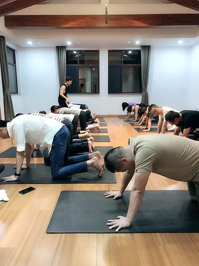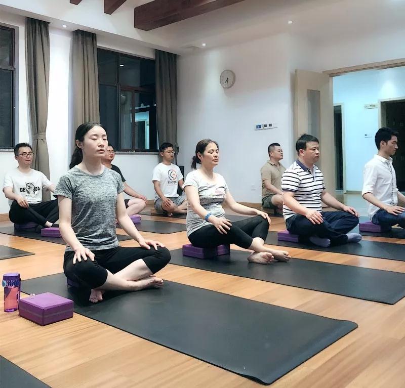 當(dāng)晚磅礴的大雨并沒(méi)有影響大家參與的熱情,同事們?cè)缭鐏?lái)到場(chǎng)館內(nèi)跟隨老師練習(xí),20多位瑜伽愛好者時(shí)而盤腿而坐、時(shí)而單腳站立,時(shí)而曲腿、時(shí)而展臂、時(shí)而弓腰……正在按照老師的呼吸、調(diào)息、冥想的遞進(jìn)方式進(jìn)行瑜伽系統(tǒng)的學(xué)習(xí)。