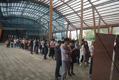 開盤尚未開始,奧體中心綜合館外就排起長龍等候,現(xiàn)場座無虛席,火熱氣氛一觸即發(fā),故而個個都摩拳擦掌,人人欲捷足先登,就怕慢了一拍,錯失心儀房源。