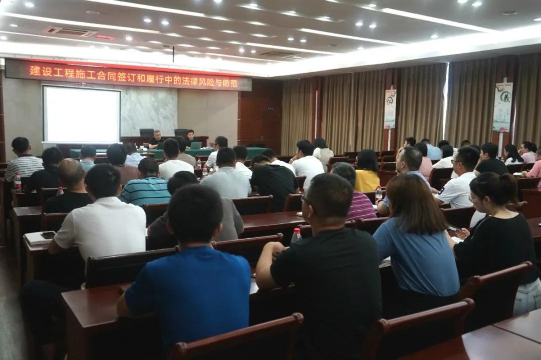 為進(jìn)一步提高公司在建設(shè)工程施工合同簽訂、履行過程中法律風(fēng)險(xiǎn)的識(shí)別與防范能力,增強(qiáng)合同的監(jiān)管監(jiān)控力度,根據(jù)“清廉講堂”課程安排,7月30日下午,公司邀請(qǐng)了法律顧問舒文建就建設(shè)工程施工合同簽訂和履行中的法律風(fēng)險(xiǎn)與防范作專題講座。公司全體中層干部、營銷、財(cái)務(wù)和工程項(xiàng)目管理人員共計(jì)60余人參加會(huì)議。