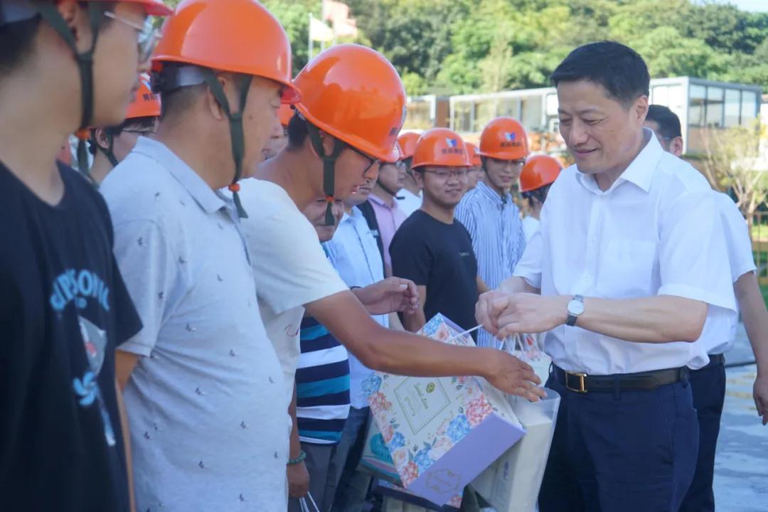 8月12日上午,集團(tuán)黨委書記、董事長周建新,黨委委員、副總經(jīng)理章健赴公司承建的壟上花苑施工現(xiàn)場(chǎng),向堅(jiān)守崗位的建設(shè)者送去關(guān)心和慰問,公司領(lǐng)導(dǎo)陪同前往。