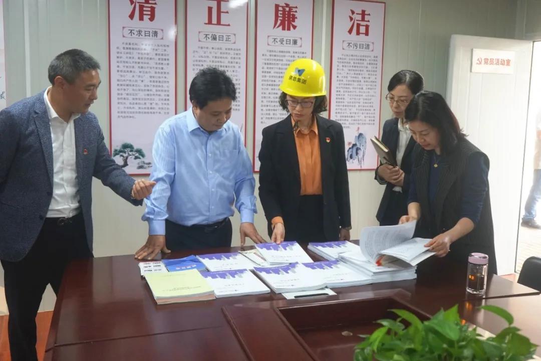 在實(shí)地查看項(xiàng)目建設(shè)進(jìn)展情況后,婁書記一行深入項(xiàng)目黨支部,聽(tīng)講解、看展板,并認(rèn)真參觀了黨建工作室、黨員活動(dòng)室、紅色文化走廊,仔細(xì)翻閱“紅色工地”宣傳冊(cè)等相關(guān)臺(tái)賬資料,駐足觀看了“紅色工地”建設(shè)宣傳片,詳細(xì)了解了公司在保障黨建工作在工地“落地生根”的各項(xiàng)創(chuàng)新舉措和項(xiàng)目黨支部在黨建管理模式及文明施工、質(zhì)量安全、技術(shù)創(chuàng)新上取得的成效。