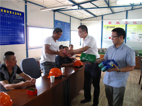 在工地施工現(xiàn)場(chǎng),王磊一行詳細(xì)了解了工程的開(kāi)展情況,對(duì)于工程的順利開(kāi)展表示肯定。向堅(jiān)守工作崗位的建設(shè)者們表達(dá)了親切問(wèn)候,一再囑咐大家在高溫作業(yè)時(shí)要注意防暑降溫和人身安全,并將慰問(wèn)品一一送到他們手中。他還強(qiáng)調(diào),項(xiàng)目單位要給予一線員工更多關(guān)懷,為員工們創(chuàng)造好的工作環(huán)境。做好一線工作人員的工時(shí)安排、安全保障和后勤服務(wù)等,確保一線員工身體健康、安全生產(chǎn)。以保質(zhì)保量完成工程建設(shè)任務(wù)。