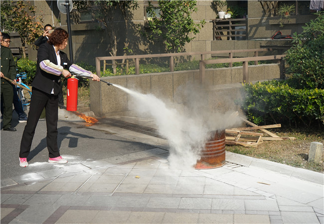 隨后,消防大隊的工作人員現(xiàn)場進行了詳細生動的消防器材使用教學(xué),物業(yè)工作人員及小區(qū)居民踴躍參與學(xué)習(xí)滅火器等消防器材的正確使用,并進行了滅 火演練,現(xiàn)場氣氛活躍。