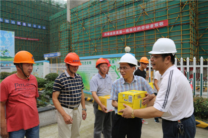 7月23日上午,市總工會(huì)黨組副書記王則康率權(quán)保部長(zhǎng)王錫榮、副部長(zhǎng)孫曉嵐副部長(zhǎng)等市總慰問組,在局工會(huì)副主任盧美月、市城投集團(tuán)公司工會(huì)主席沈俊、副總經(jīng)理周紅衛(wèi)的陪同下,來到金田家園送清涼,慰問一線民工,王書記一行將40箱飲料一一送到民工手中,送去清涼的同時(shí)向大家的不辭辛苦、默默奉獻(xiàn)表示了感謝,并提醒他們一定要適當(dāng)調(diào)整、注意休息。