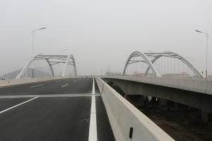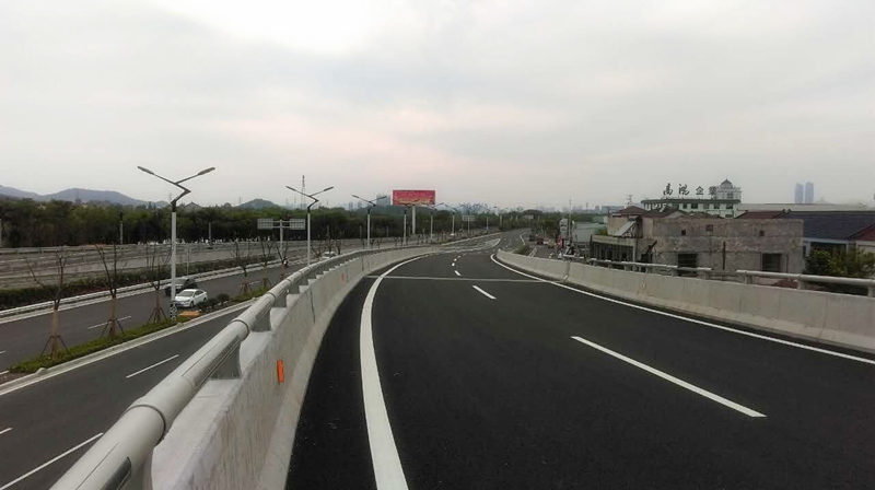 中心城市外環(huán)環(huán)道路東南端工程由申蘇浙皖至申嘉湖高速公路連接線和104國道連接支線組成。其中高速連接線:北起申蘇浙皖高速環(huán)渚立交,南止申嘉湖高速湖州東互通相接,全長9.2公里。104國道連接支線:西起104國道與二環(huán)南路交點,東與高速公路連接線相連,全長5.1公里。項目建設總里程14.3公里。道路規(guī)劃斷面寬100米,其中道路建設寬度60米,兩側(cè)各設置綠化防護經(jīng)濟林20米設計時速80公里。全線共有特大橋1座、大橋5座、中小橋7座,涵洞46道。